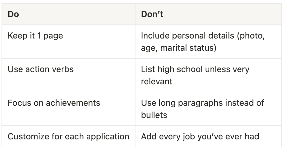 ✅ Quick Do’s and Don’ts for U.S. Resumes